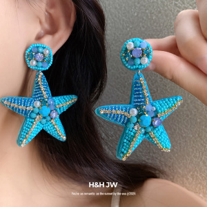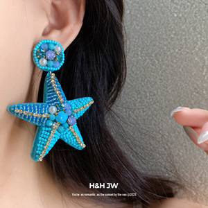 银针镶钻珍珠星星吊坠耳环海边度假风百搭耳钉小众高级感耳饰批发