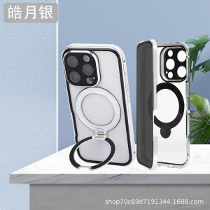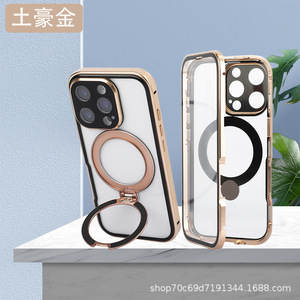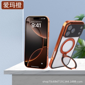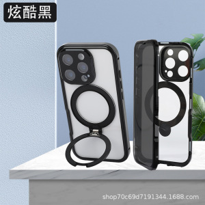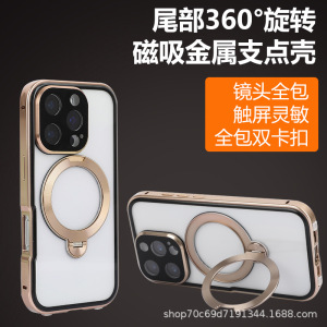 苹果17pm支点壳360旋转万磁王护镜手机壳16pro金属CD纹支架双卡扣