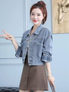 早秋牛仔外套女2025年秋款百搭上衣短款高腰披肩夹克宽松韩版时髦