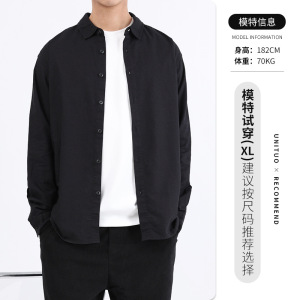男装男士亚麻长袖男式衬衫春秋款高级感衬衣休闲宽松上衣外套男款