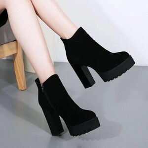2025新款秋季冬天高跟鞋短靴女粗跟单靴保暖加绒防水台马丁靴女靴