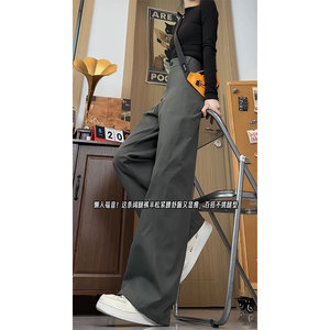 美式立体拼接显瘦直筒休闲长裤秋季弹力感百搭宽松斜切工装裤