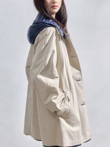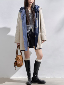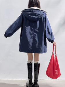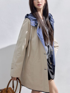 正反两面穿连帽翻领风衣春秋季新款潮牌港风宽松单排扣中长款外套