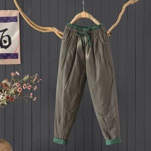 冬季通勤撞色系带加厚保暖哈伦裤小脚裤女装文艺宽松显瘦长裤棉裤