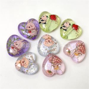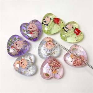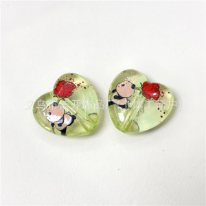 通孔公主小熊印花透色爱心串珠笔配件 手机匙包挂diy手工饰品材料