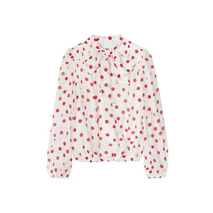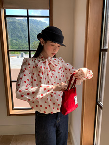 诠释美 NEWOPEN 25秋法式甜美小清亲减龄系带长袖波点衬衫女F6589