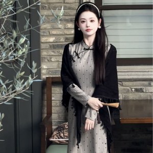 灰色 旗袍连衣裙 【不含披肩】