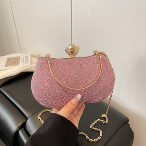 小众轻奢镶钻晚宴包2025新款潮质感链条手提包百搭硬壳女士斜挎包