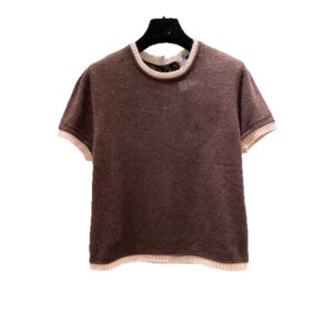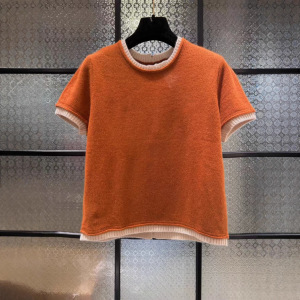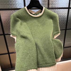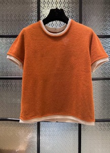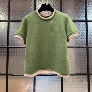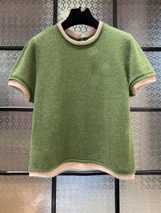 南油直供25秋冬洋气圆领短袖针织衫经典胸前字母贴布羊绒保暖上衣