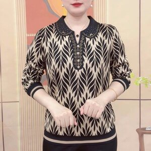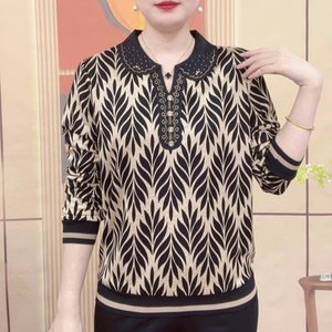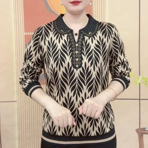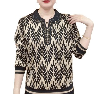 一件代发直播爆款印花打底衫2025春秋季款长袖T恤女士妈妈装上衣