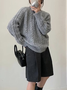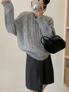 韩系温柔风麻花圆领套头毛衣女秋冬新款软糯百搭针织衫上衣女1346