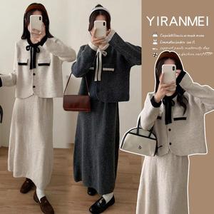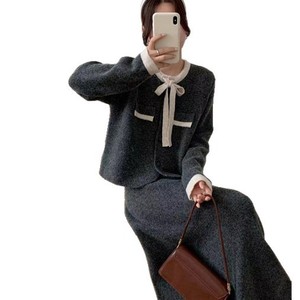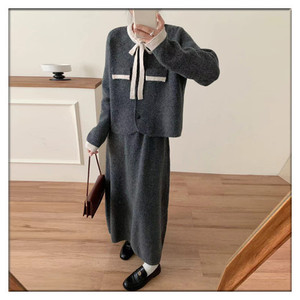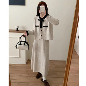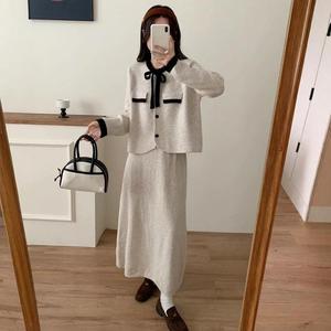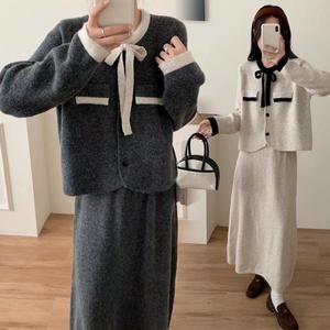 欧系跨境小香风洋气针织两件套装秋冬季高级感时尚上衣外套半身裙