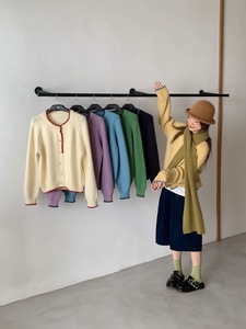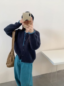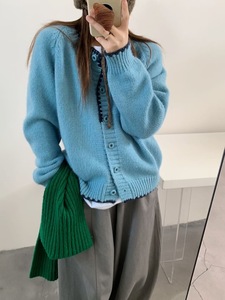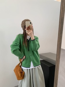小个子韩系圆领彩扣设计感针织开衫女秋冬季新款宽松毛衣外套加厚