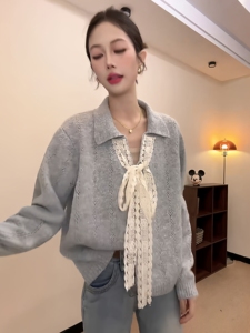 秋冬穿搭蕾丝系带毛衣女款2025新款时尚洋气减龄镂空针织开衫上衣