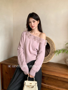 秀熙熙2025秋季新款白标宽松长袖花朵针织衫上衣小衫毛衣女25052