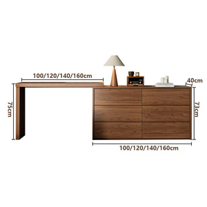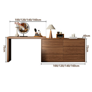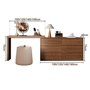 定制实木梳妆台斗柜一体卧室床尾原木橡木L型转角伸缩化妆桌收纳