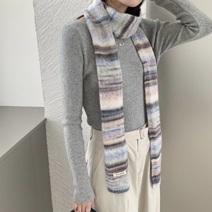 新款秋冬彩虹条纹羊毛混纺围巾女小众细长针织撞色渐变百搭潮围脖