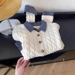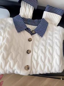 设计感假两件格子polo领撞色毛衣女秋冬新款独特拼接麻花针织上衣