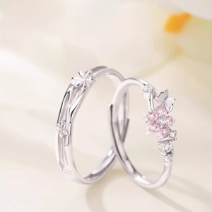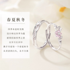 创意设计春夏秋冬情侣戒指森系小众蝴蝶花朵对戒轻奢百搭男女戒指
