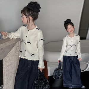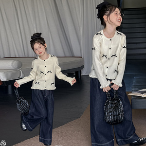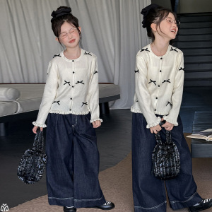 女童套装春秋2025新款儿童洋气毛衣开衫阔腿裤两件套女孩早秋穿搭