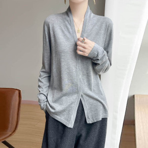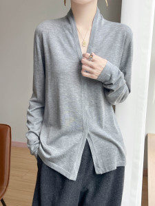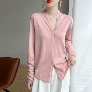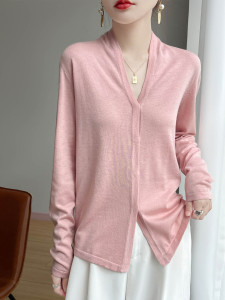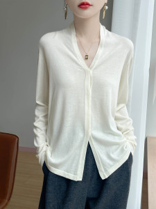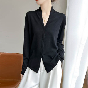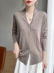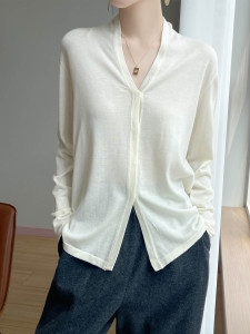 暗扣开衫春秋法式气质优雅通勤软糯针织精纺羊毛V领长袖针织衫女