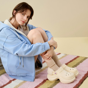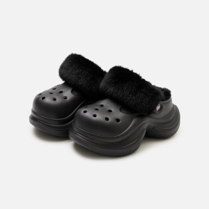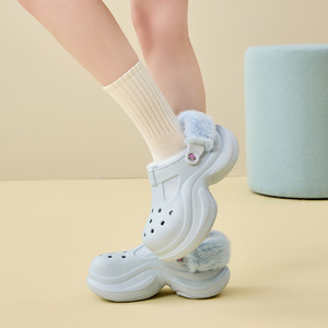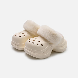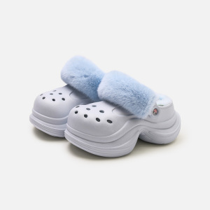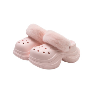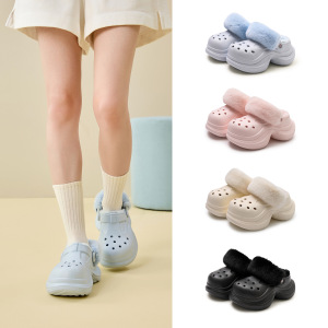 5.5cm增高加绒洞洞鞋女冬天外穿防滑毛绒拖鞋冬季居家保暖毛拖鞋