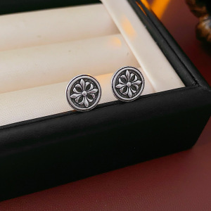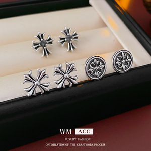 冷淡风银针圆形十字架耳环时尚复古简约百搭耳钉小众高级感耳饰女