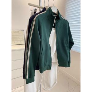 美式复古立领短外套女!秋显白墨绿色显瘦小个子休闲夹克开衫卫衣