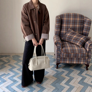 韩系高级感宽松休闲风翻领风衣外套女2025早秋新款格纹拼接上衣潮