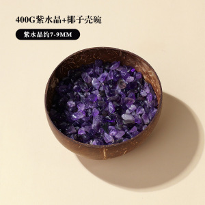 紫火碗=椰子壳碗+300g七彩玛瑙5-9mm碎石+3-5cm紫水晶原石+肉桂+贝壳