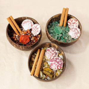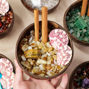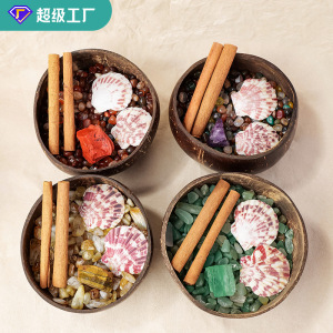 五行水晶椰子壳碗=5-9mm碎石+3-5cm原石+肉桂+贝壳