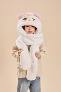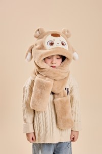 宝宝帽子围巾一体帽男女户外毛绒秋冬季加厚保暖防风护耳抖音爆款