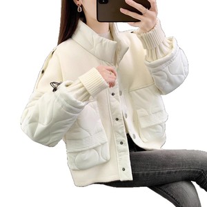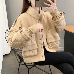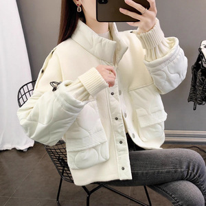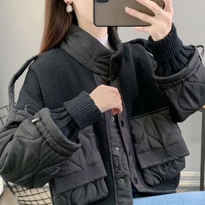 大码胖mm设计感棉服拼接毛衣开衫女加厚短款秋冬新款慵风懒外套潮