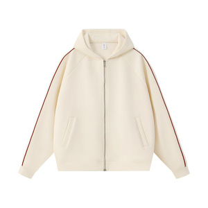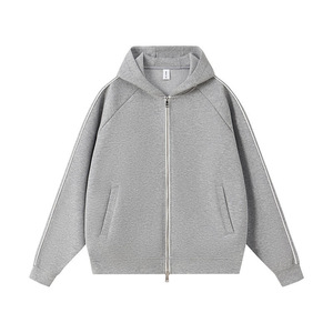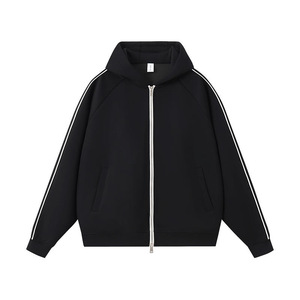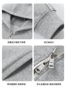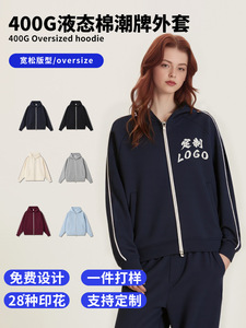 春秋新款400g液态棉潮牌落肩拉链开衫外套男女款宽松连帽卫衣印图