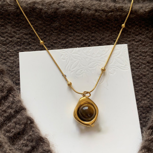 美拉德风水滴虎眼石项链轻奢高级感百搭锁骨链小众时尚气质项饰女