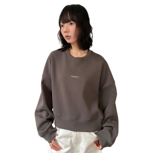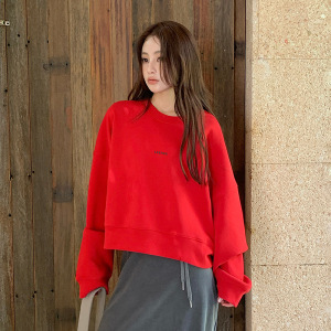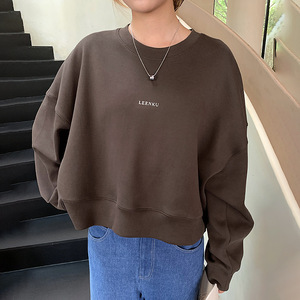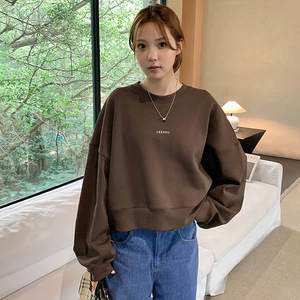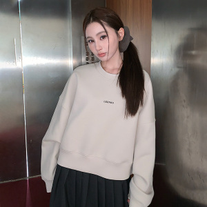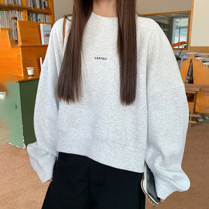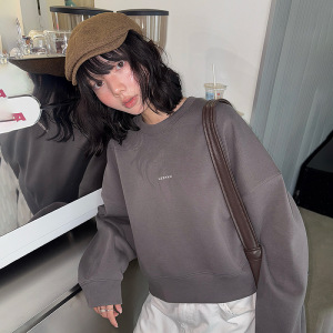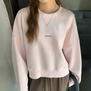 韩版简约风圆领卫衣女秋季新款落肩慵懒宽松百搭无帽短款百搭上衣