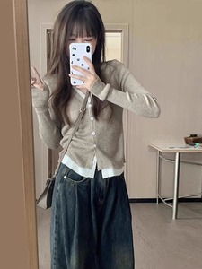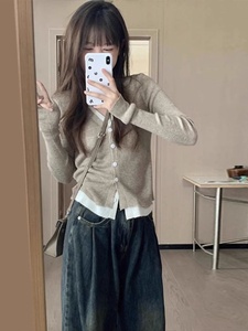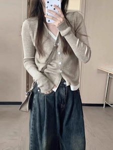假两件针织衫女2025新款早春款长袖上衣设计感小众春秋内搭打底衫