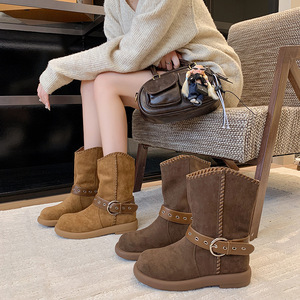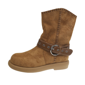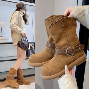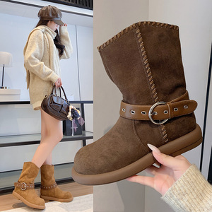软皮版博肯短靴女2025新款秋冬季瘦瘦靴女士马丁靴西部靴厚底靴子