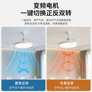 大风力客厅风扇灯中古风简约餐厅灯扇一体隐形吊扇灯静音电风扇灯