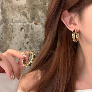 秋冬款美拉德风豹纹穿链C形耳钉小众设计高级感辣妹耳饰品批发