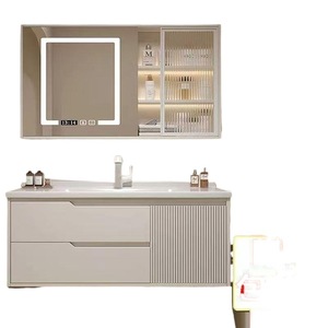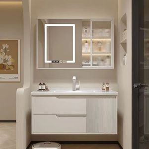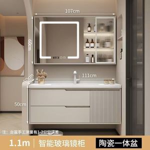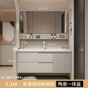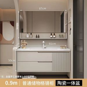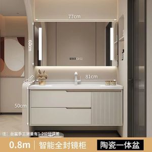 橡木浴室柜卫生间奶油风洗手洗漱洗脸盆智能简约洗手池陶瓷一体盆