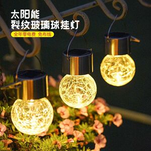 跨境太阳能灯户外裂纹吊球灯防水挂树灯庭院民宿装饰氛围灯小夜灯