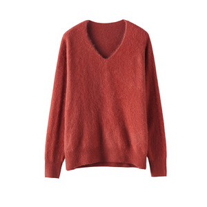 高定浮利V领羊绒羊毛拉绒衫开衫无缝一体花纱针织毛衣秋冬新款