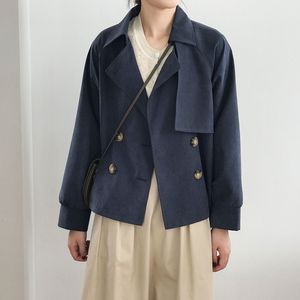 韩国秋季Chic风衣女短款小个子休闲工装外套复古宽松英伦风薄大衣