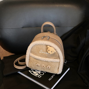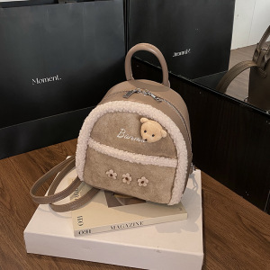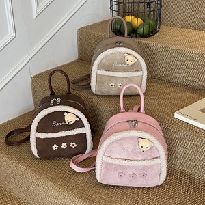 原创设计师款小熊双肩包秋新款复古绒面羊羔毛亲子女童可爱小背包