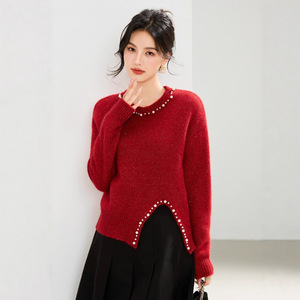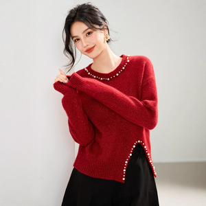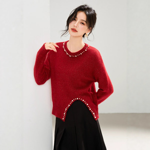 G1972红色毛衣女新年本命年气质针织衫上衣秋冬新款跨境女装潮流
