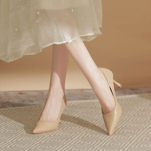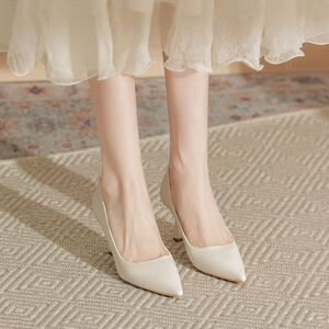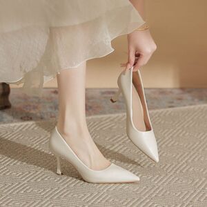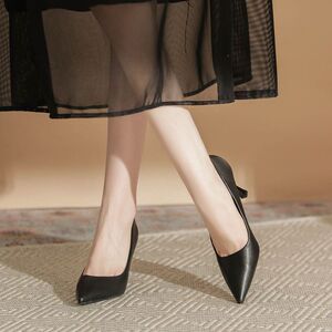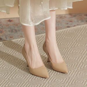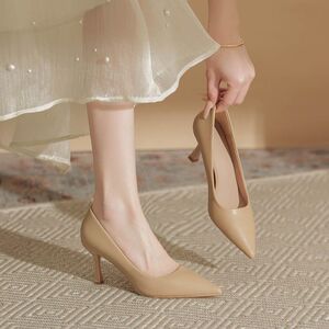 2025春季新款职业通勤百搭高跟鞋气质尖头单鞋细跟时尚软皮工作鞋