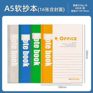软面抄a5本子学生办公用加厚笔记本横线胶装包背条日记本文具批发