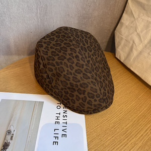 韩国麂皮绒豹纹前进帽女秋冬个性时尚贝雷帽英伦画家帽百搭报童帽