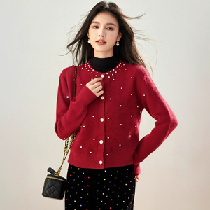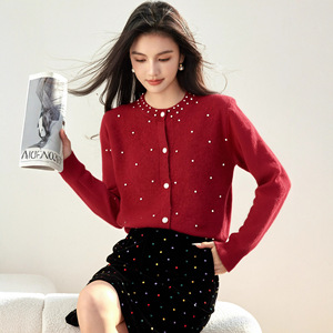 设计感小众长袖针织开衫女秋冬时尚钉珠减龄显瘦毛衣外搭软糯上衣